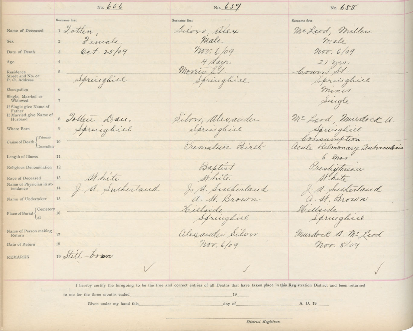Death Registration: Year: 1909 book: 5 page: 109 number: 658
