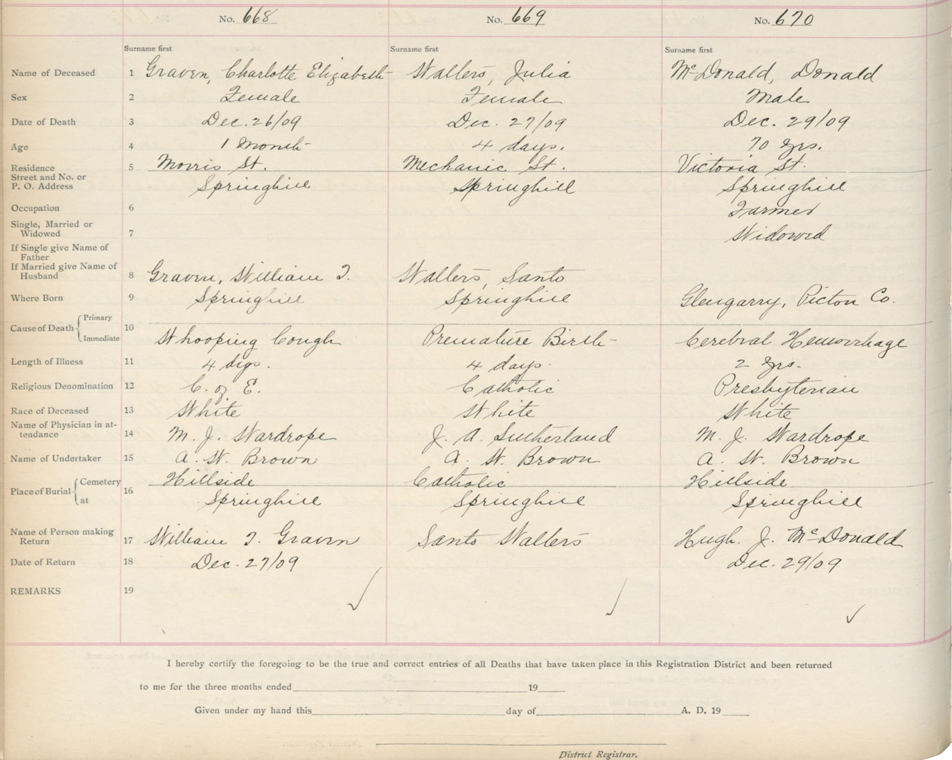 Death Registration: Year: 1909 book: 5 page: 111 number: 670