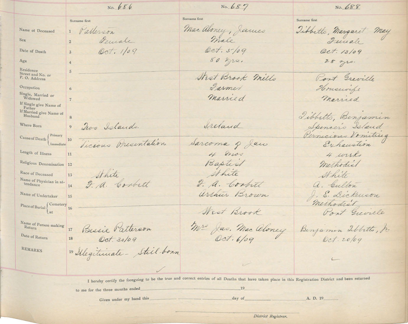 Death Registration: Year: 1909 book: 5 page: 114 number: 688