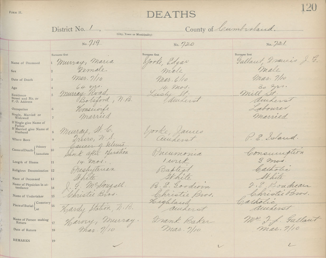 Death Registration: Year: 1910 book: 5 page: 120 number: 719
