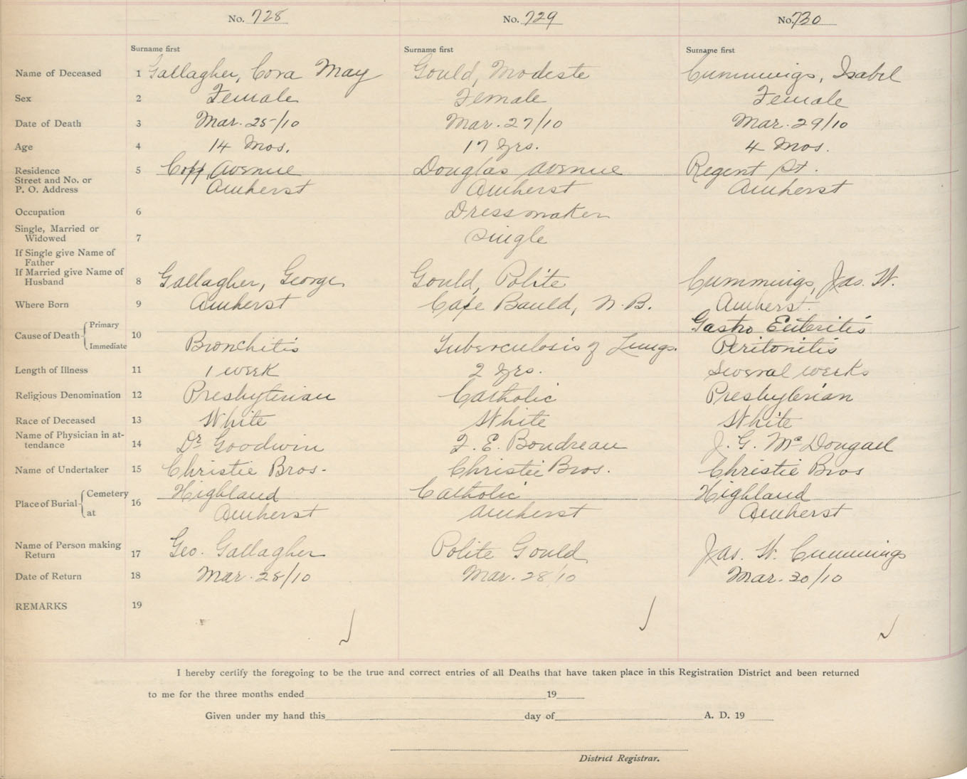 Death Registration: Year: 1910 book: 5 page: 121 number: 728