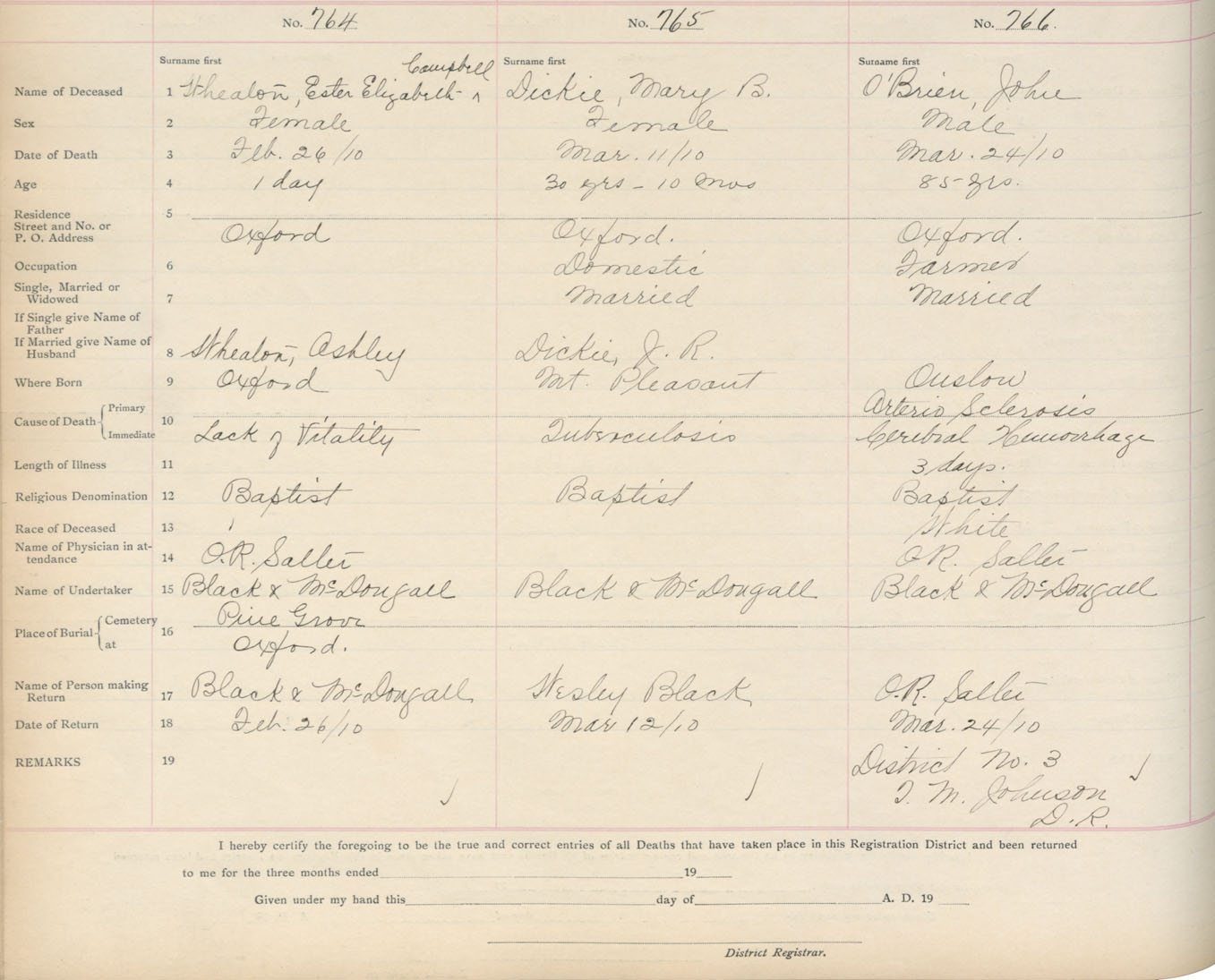 Death Registration: Year: 1910 book: 5 page: 127 number: 766