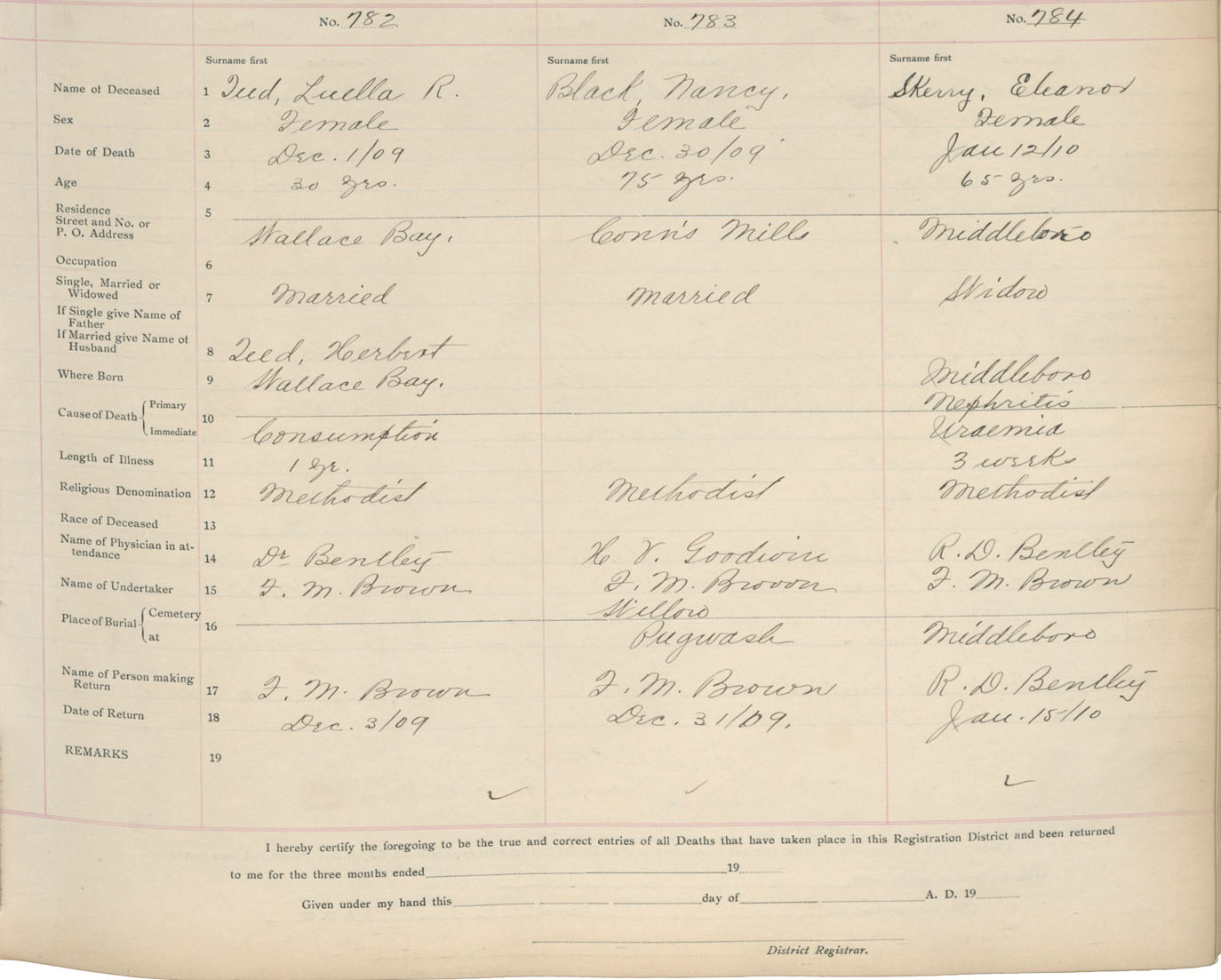Death Registration: Year: 1910 book: 5 page: 130 number: 782