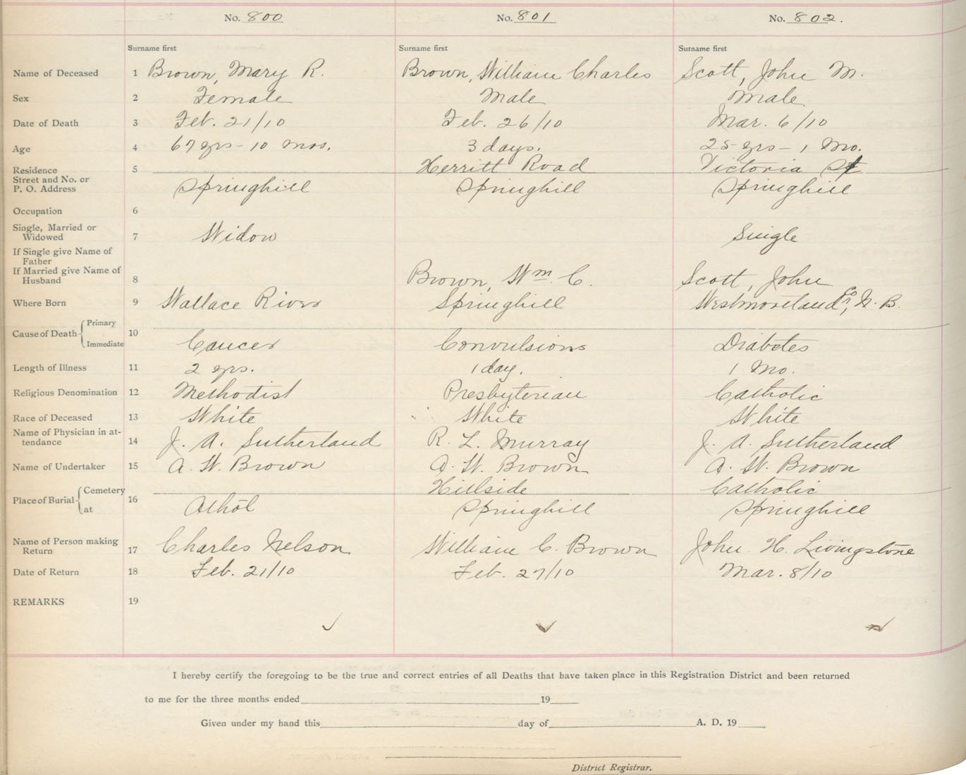 Death Registration: Year: 1910 book: 5 page: 133 number: 800