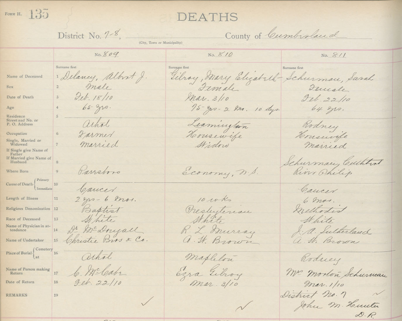 Death Registration: Year: 1910 book: 5 page: 135 number: 809