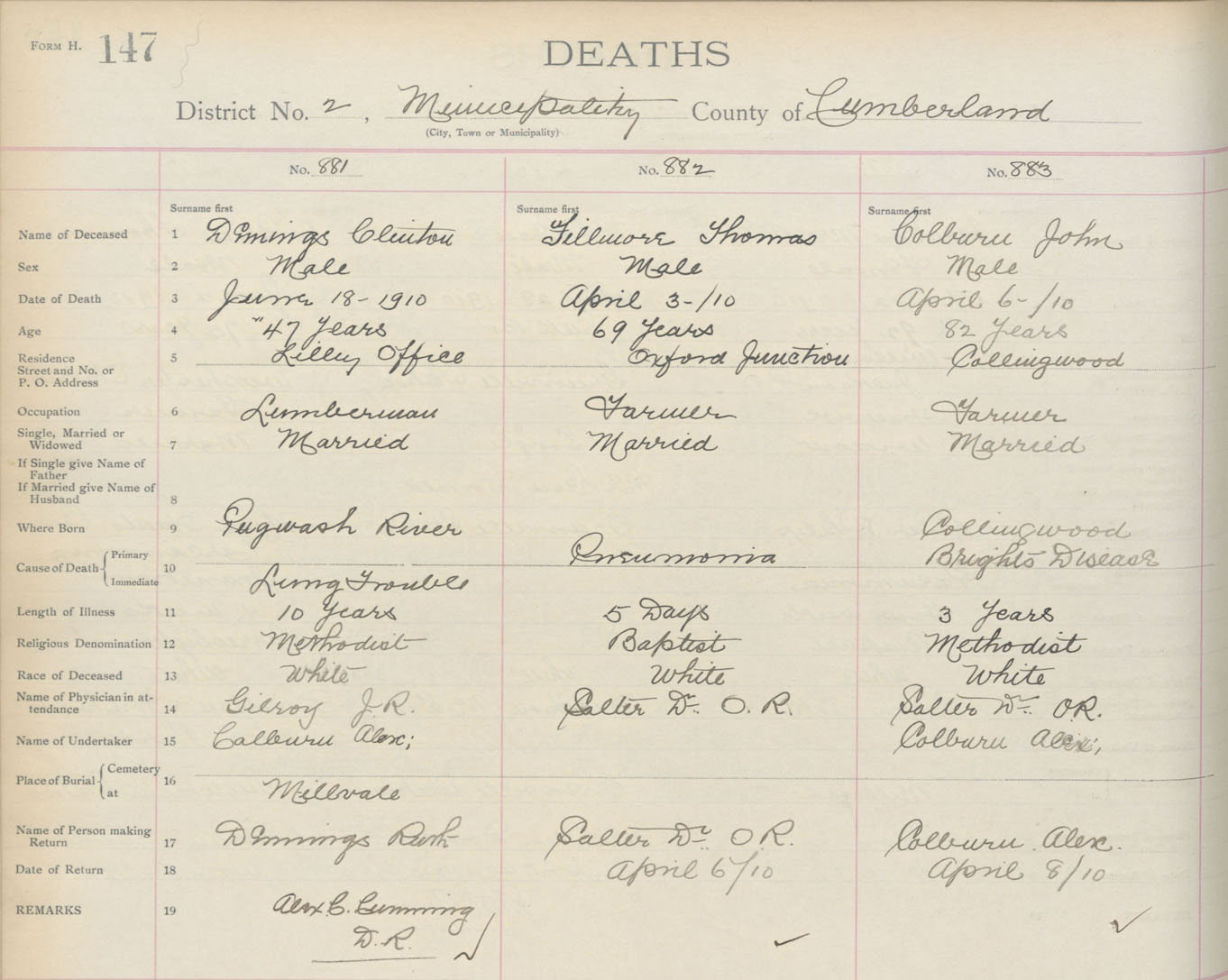 Death Registration: Year: 1910 book: 5 page: 147 number: 881
