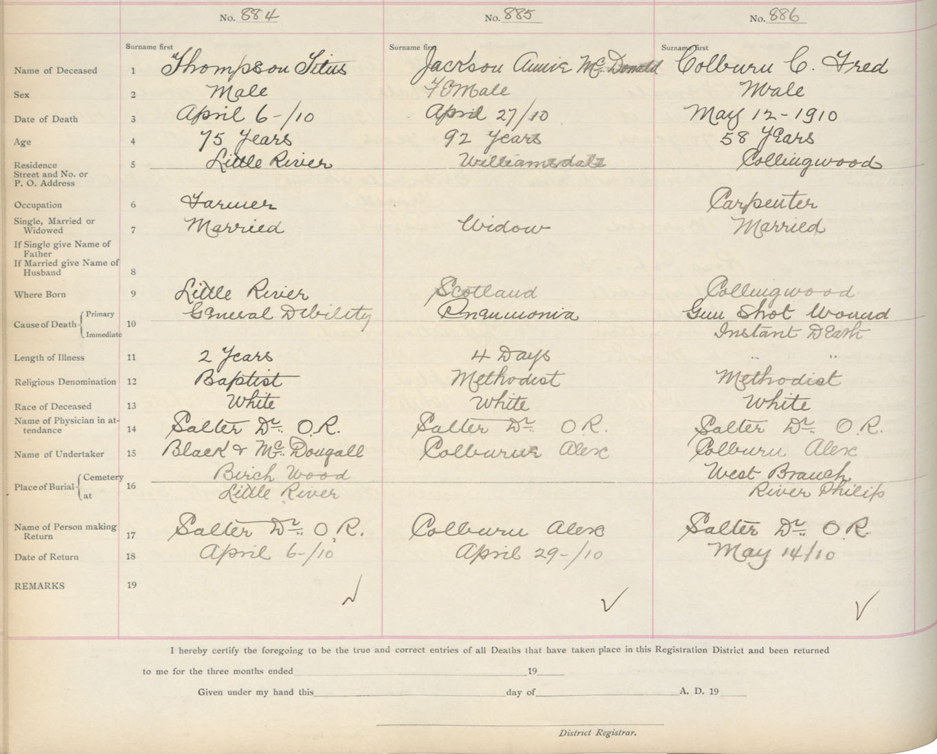 Death Registration: Year: 1910 book: 5 page: 147 number: 884