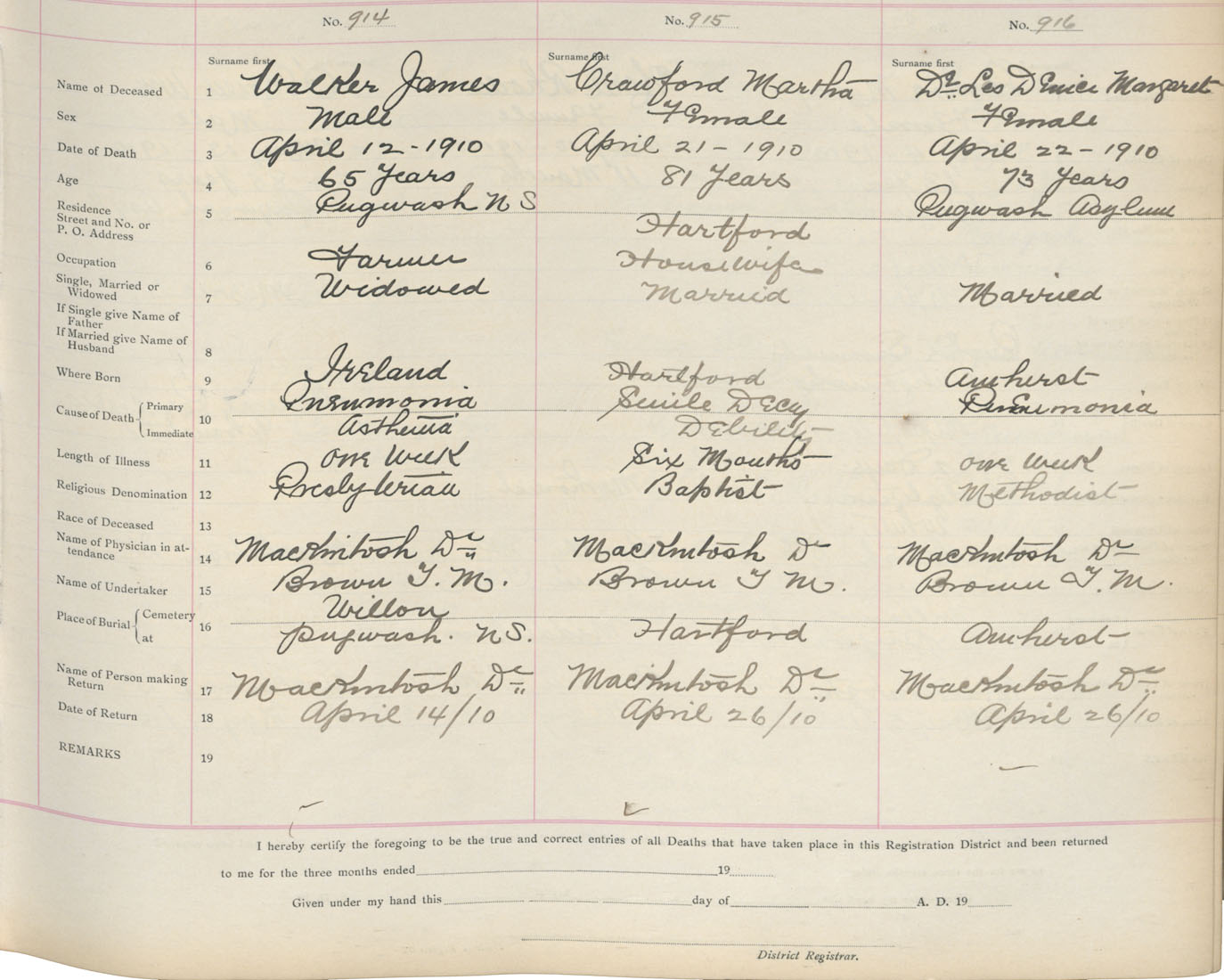 Death Registration: Year: 1910 book: 5 page: 152 number: 914