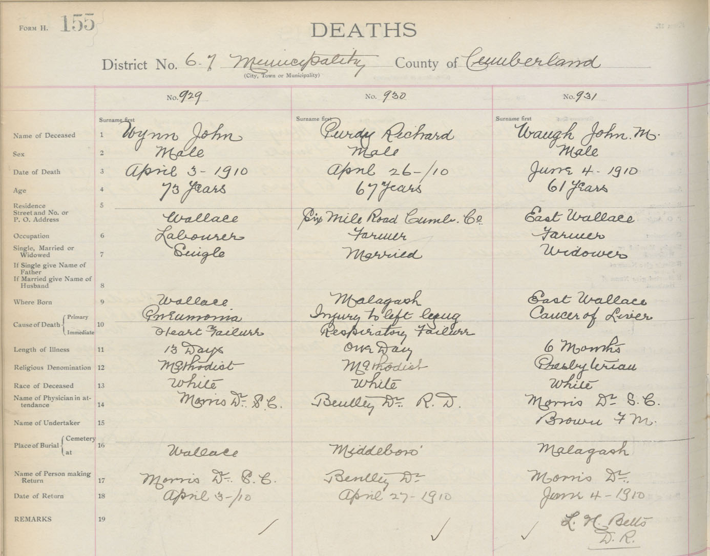 Death Registration: Year: 1910 book: 5 page: 155 number: 929