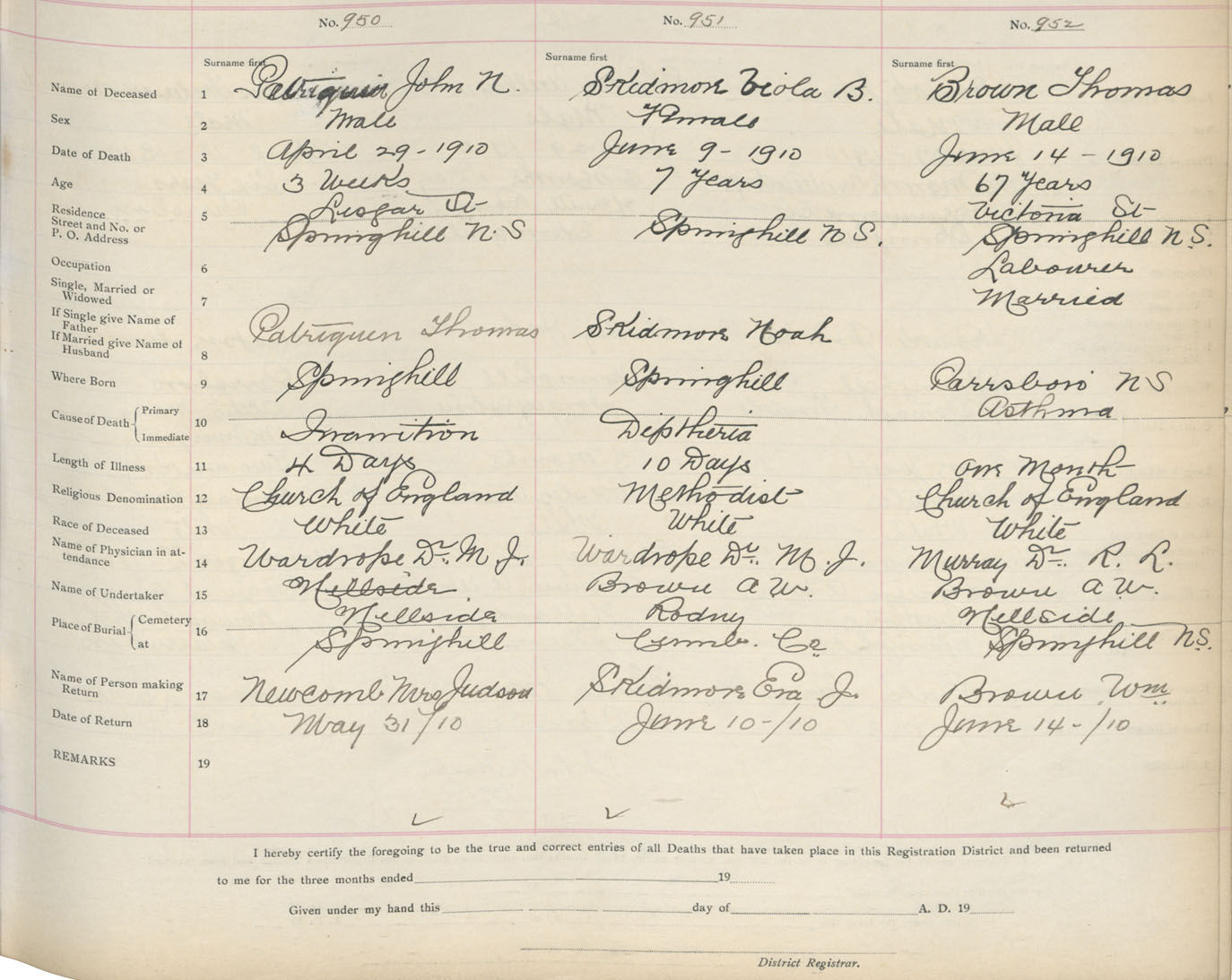 Death Registration: Year: 1910 book: 5 page: 158 number: 950