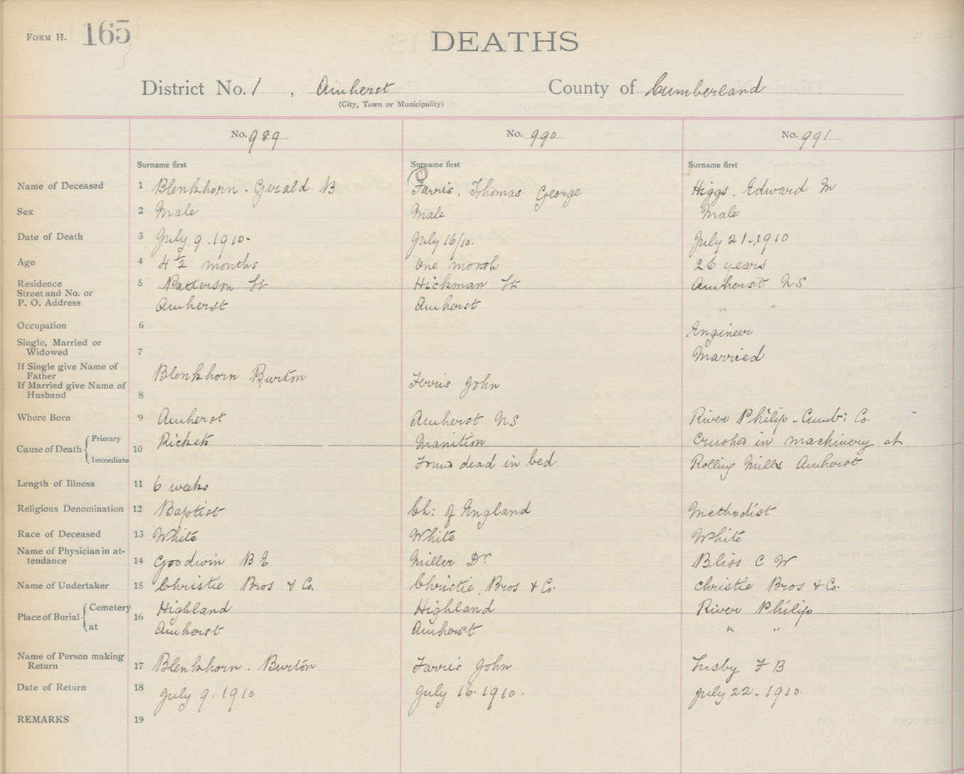 Death Registration: Year: 1910 book: 5 page: 165 number: 989