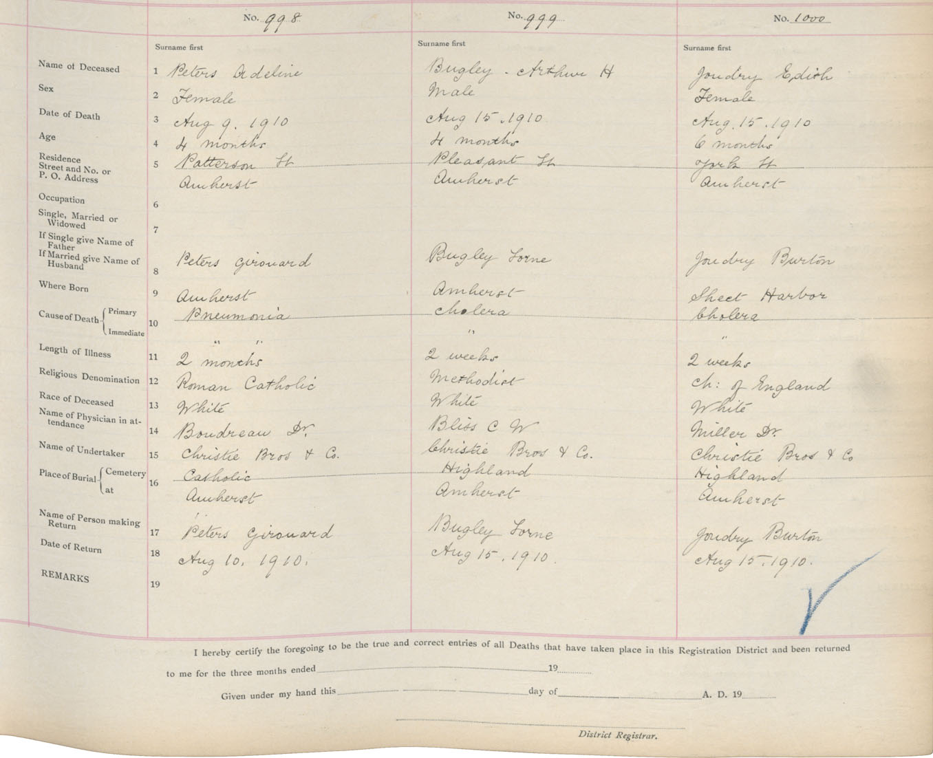 Death Registration: Year: 1910 book: 5 page: 166 number: 998