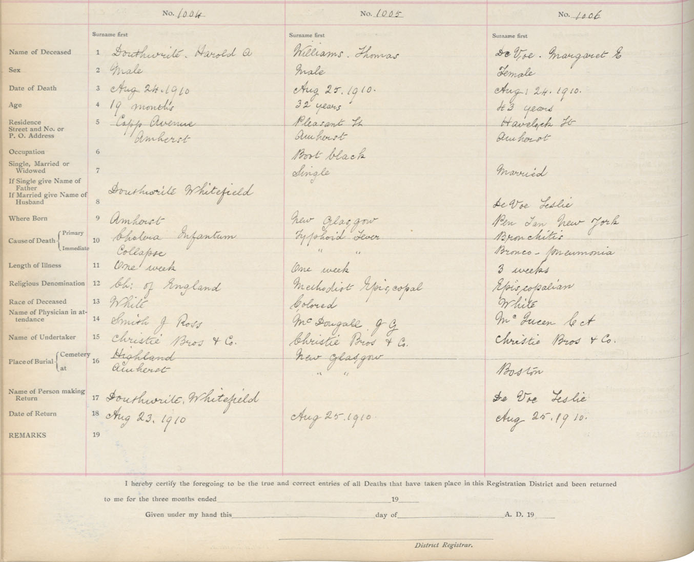 Death Registration: Year: 1910 book: 5 page: 167 number: 1004