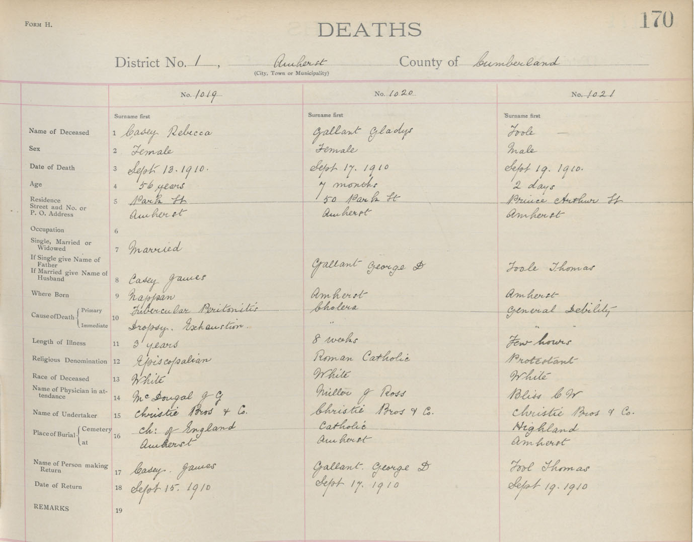 Death Registration: Year: 1910 book: 5 page: 170 number: 1019
