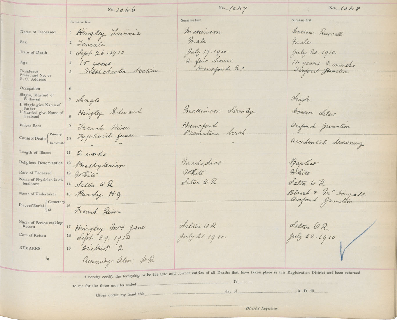 Death Registration: Year: 1910 book: 5 page: 174 number: 1046