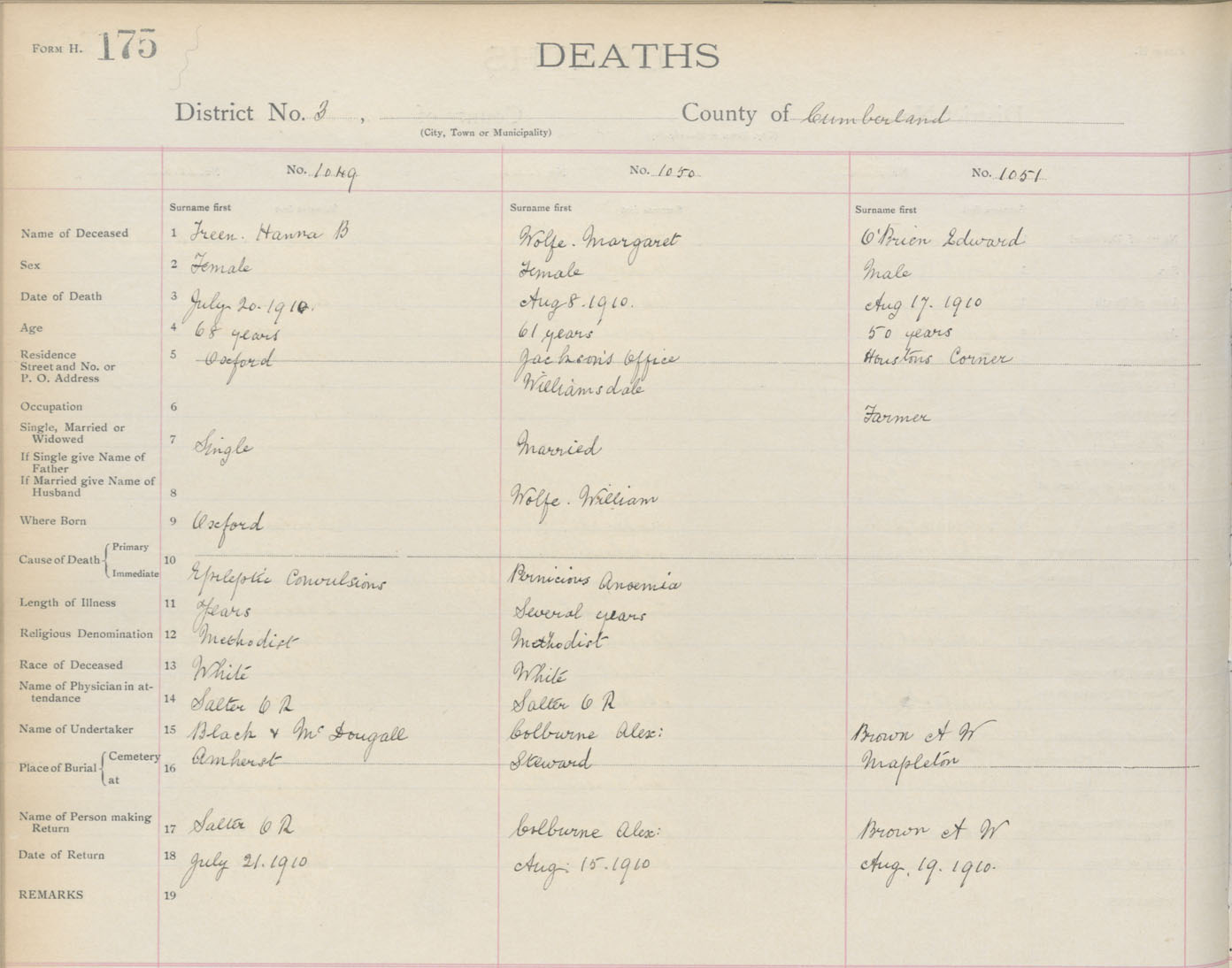 Death Registration: Year: 1910 book: 5 page: 175 number: 1049