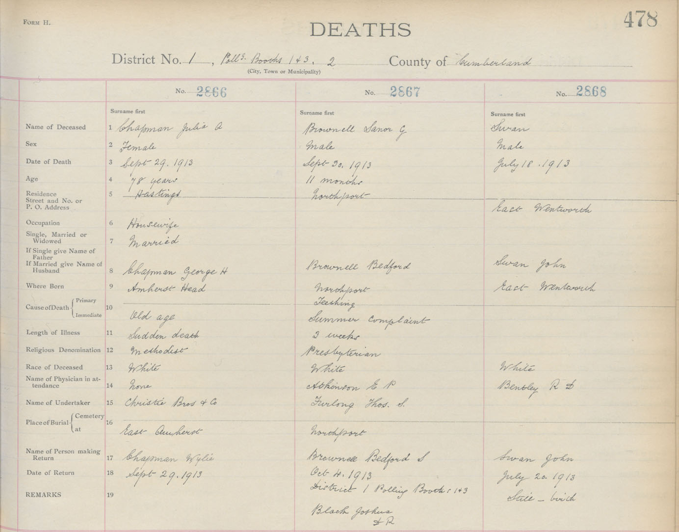 Male Death Registration: Year: 1913 book: 5 page: 478 number: 2868