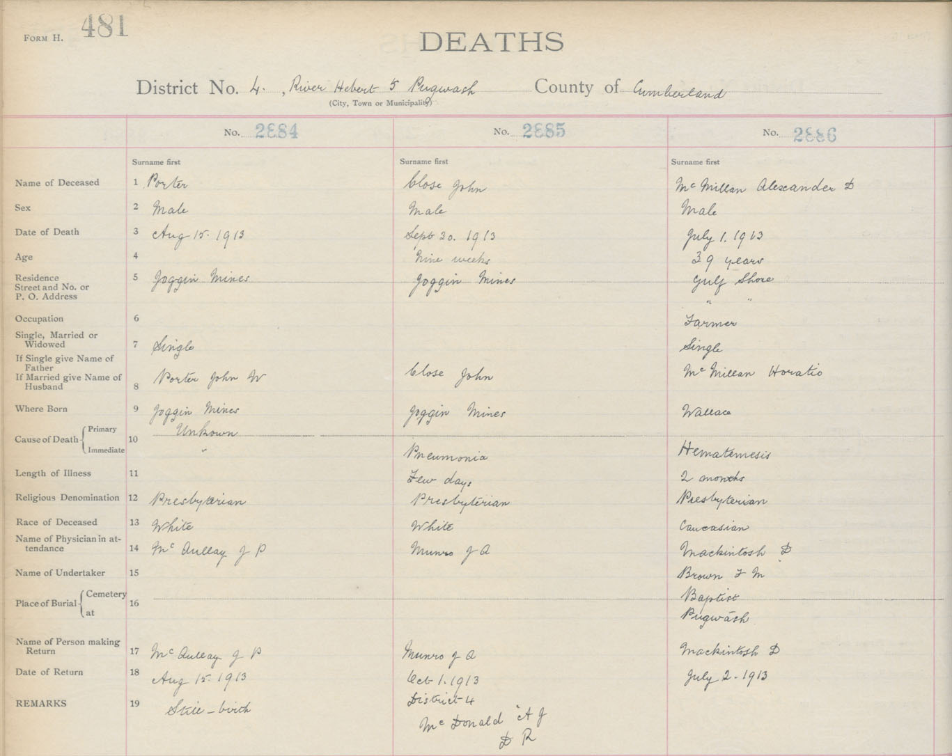 Death Registration: Year: 1913 book: 5 page: 481 number: 2886