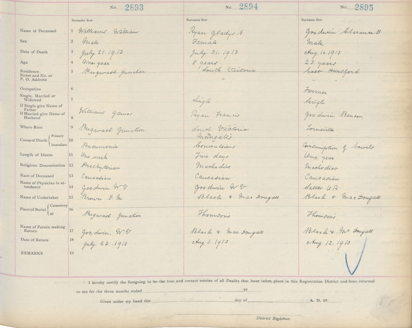Death Registration: Year: 1913 book: 5 page: 482 number: 2895