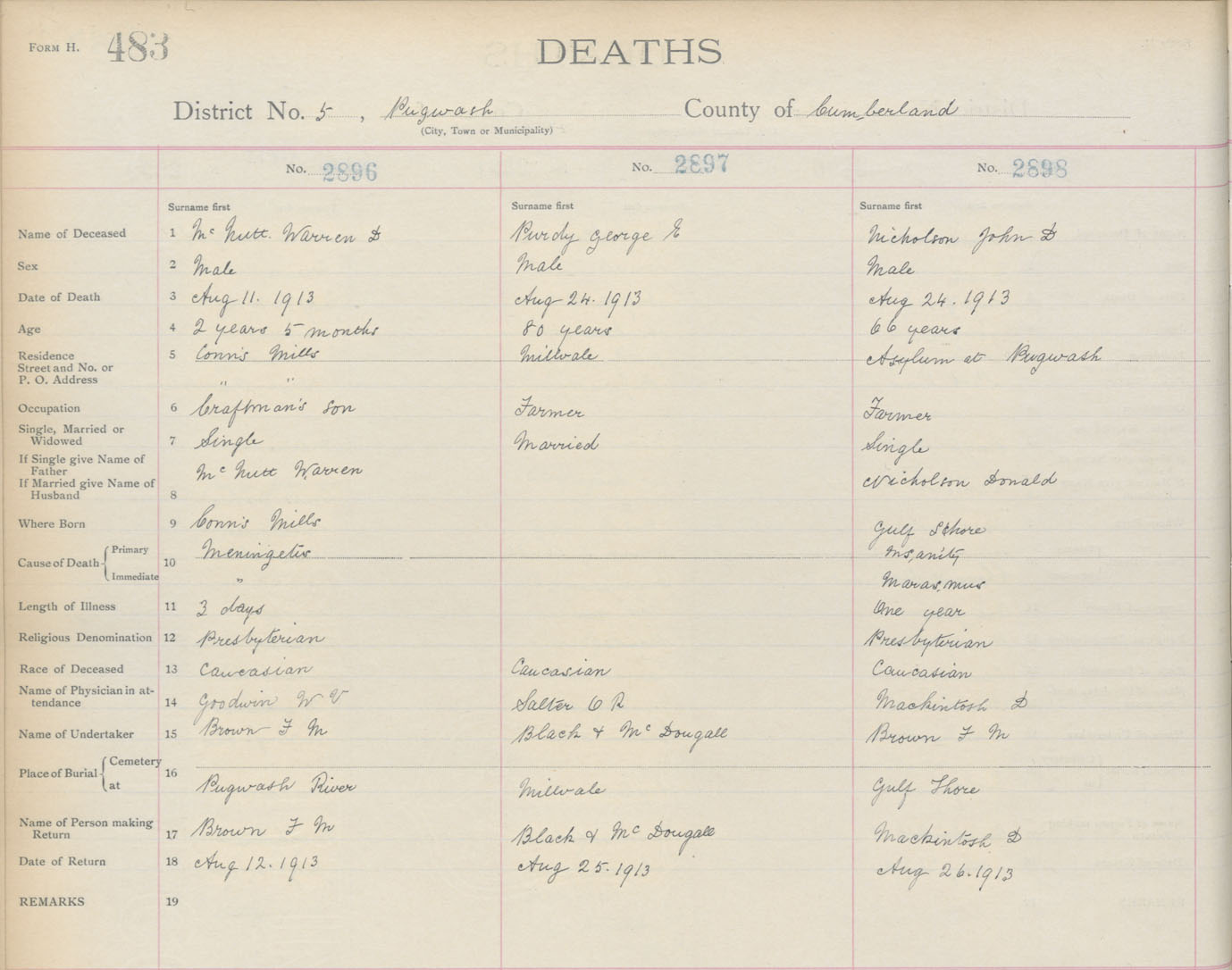 Death Registration: Year: 1913 book: 5 page: 483 number: 2898