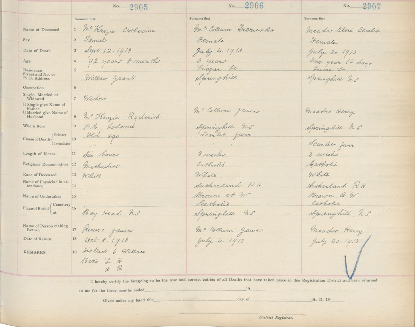 Death Registration: Year: 1913 book: 5 page: 484 number: 2907