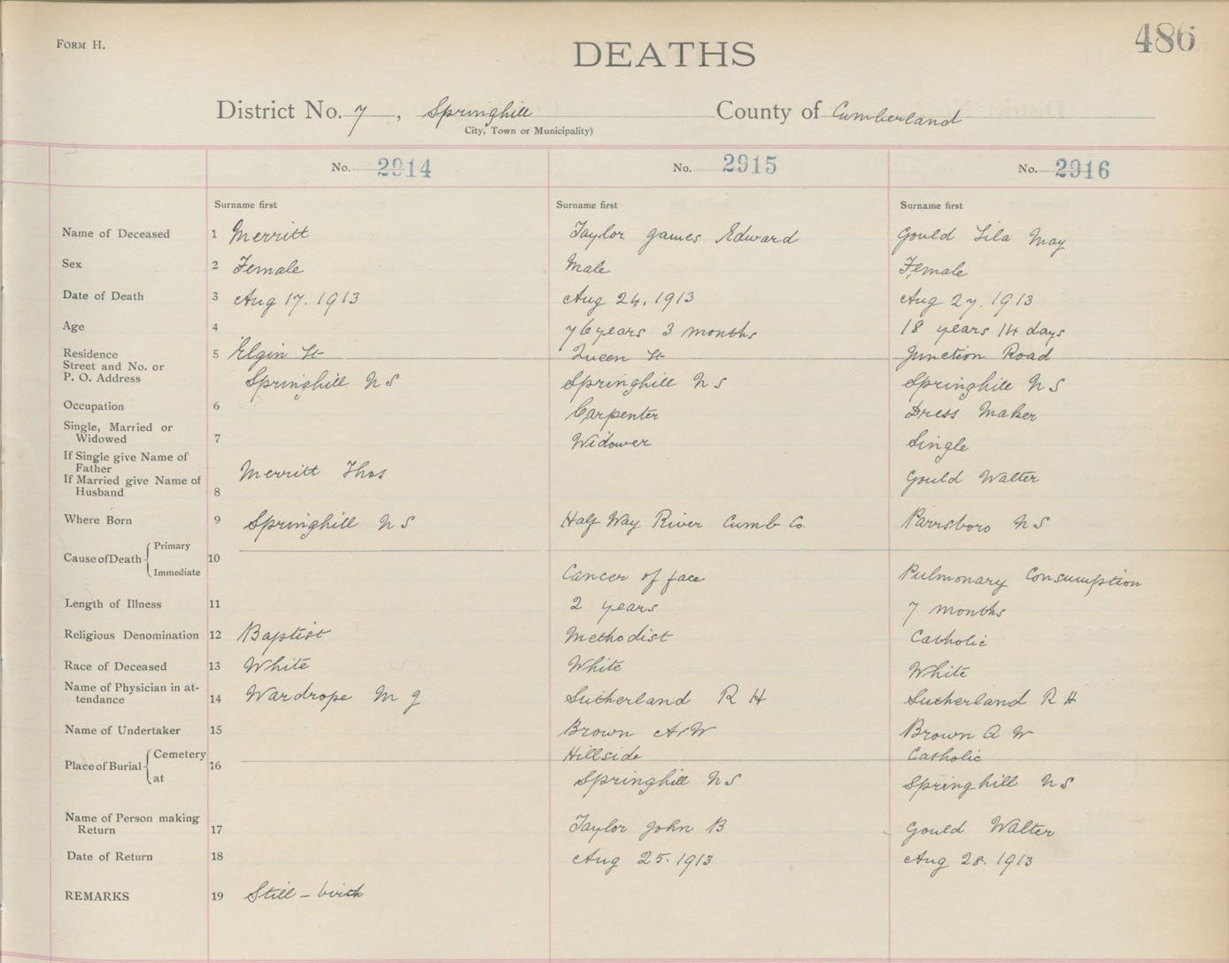 Death Registration: Year: 1913 book: 5 page: 486 number: 2916