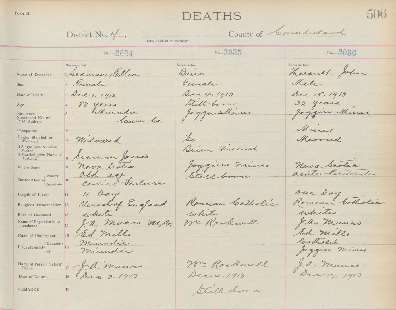 Death Registration: Year: 1913 book: 5 page: 506 number: 3036