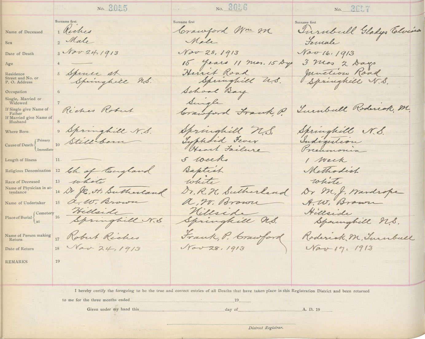 Death Registration: Year: 1913 book: 5 page: 509 number: 3057