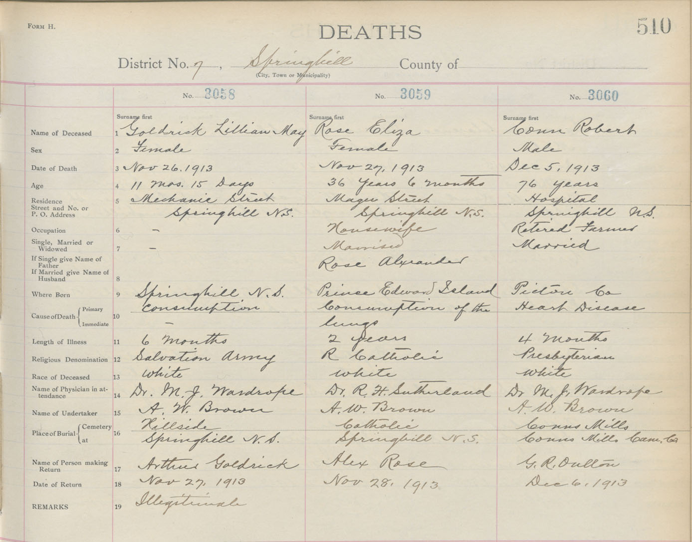 Death Registration: Year: 1913 book: 5 page: 510 number: 3060