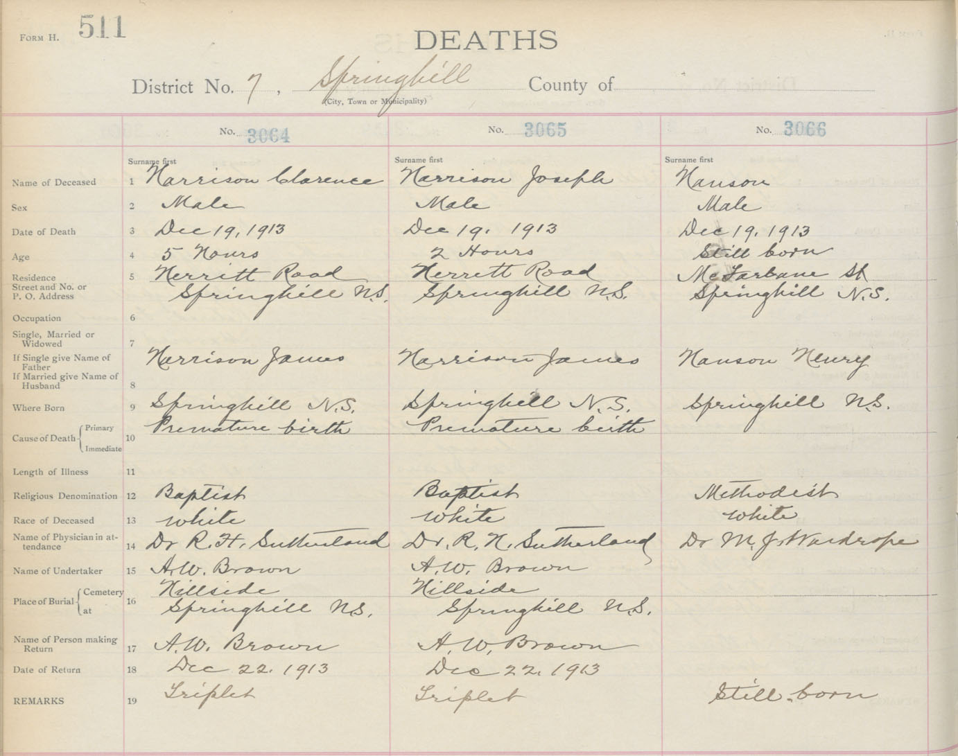 Death Registration: Year: 1913 book: 5 page: 511 number: 3066