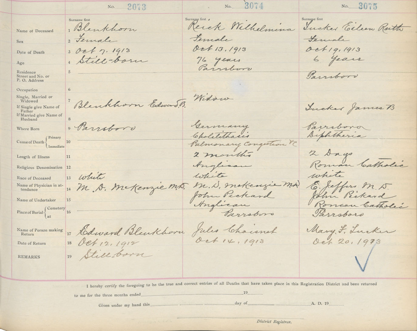 Death Registration: Year: 1913 book: 5 page: 512 number: 3075