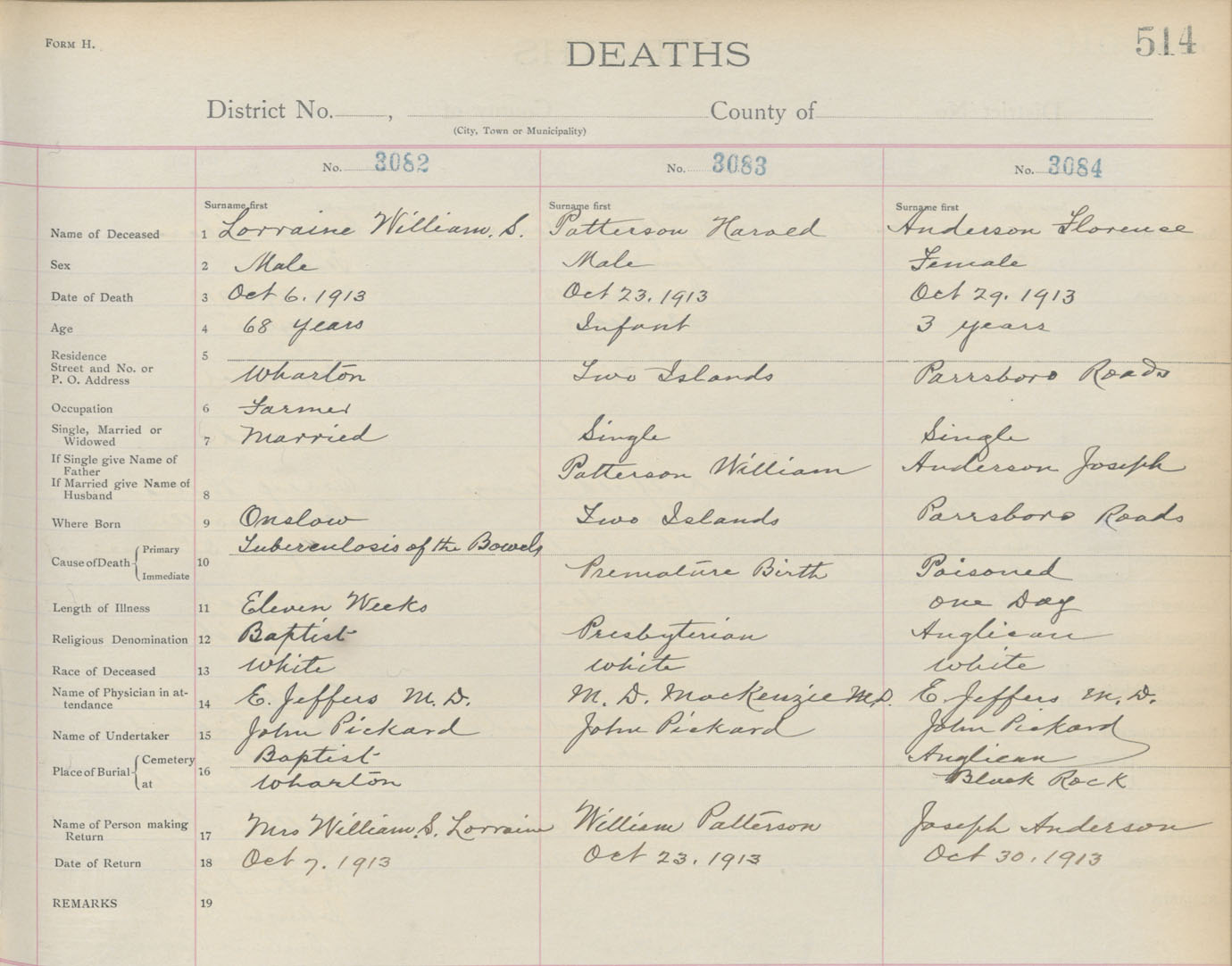 Death Registration: Year: 1913 book: 5 page: 514 number: 3084