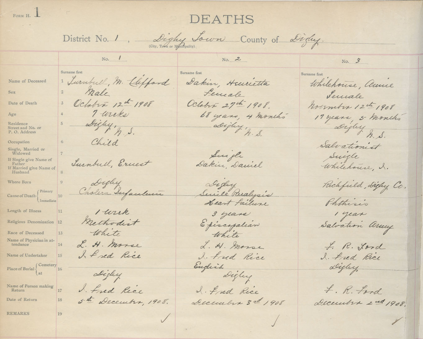 Death Registration: Year: 1908 book: 6 page: 1 number: 3