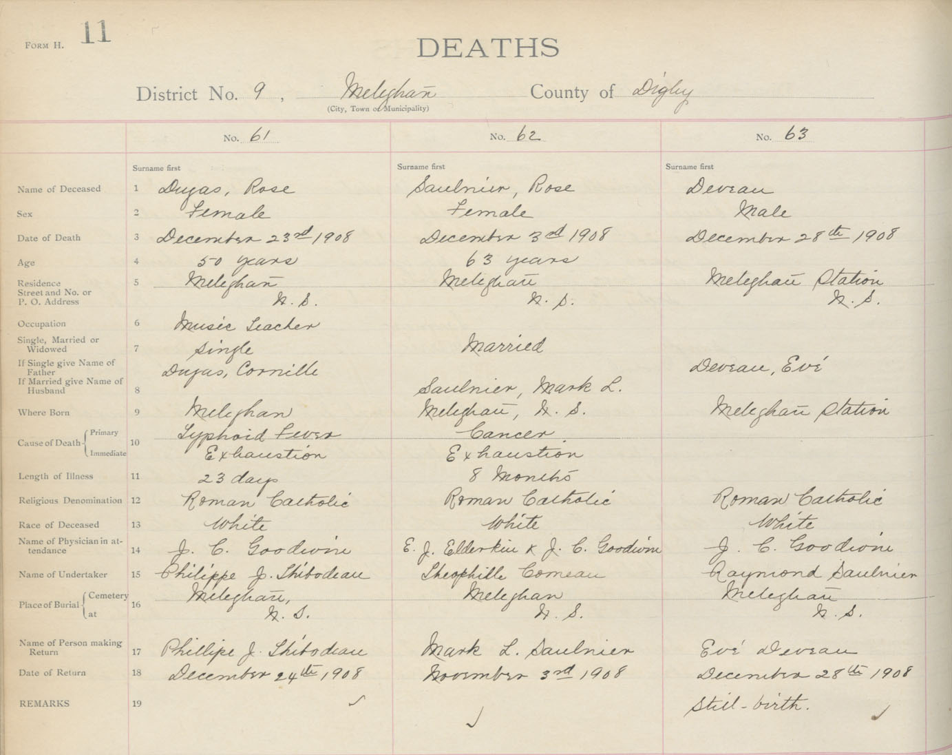 Death Registration: Year: 1908 book: 6 page: 11 number: 61