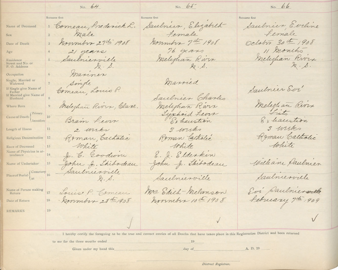 Death Registration: Year: 1908 book: 6 page: 11 number: 64