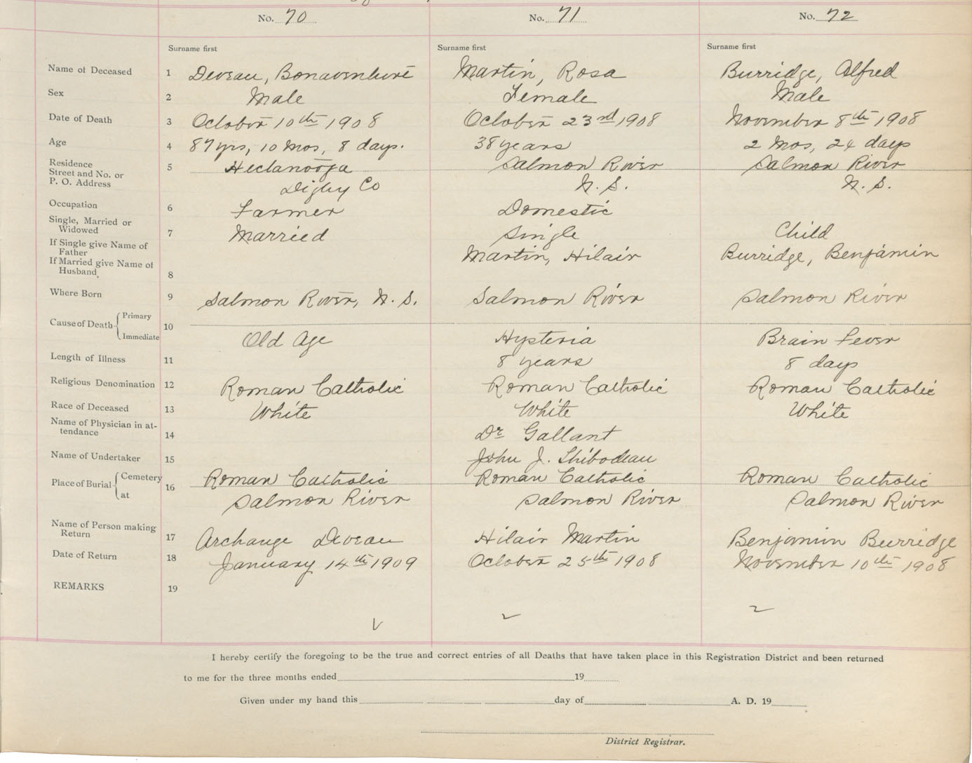 Death Registration: Year: 1908 book: 6 page: 12 number: 70