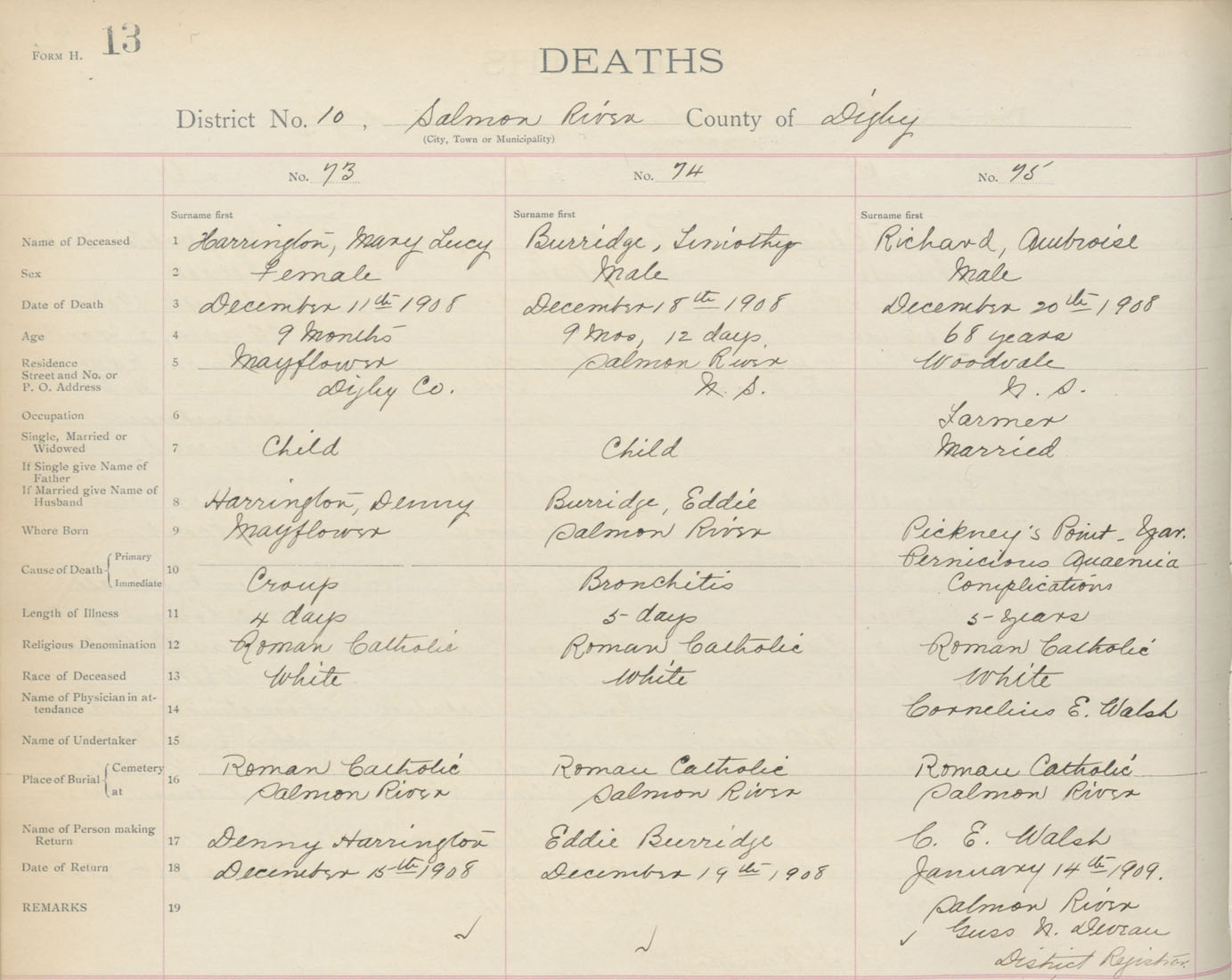 Death Registration: Year: 1908 book: 6 page: 13 number: 73