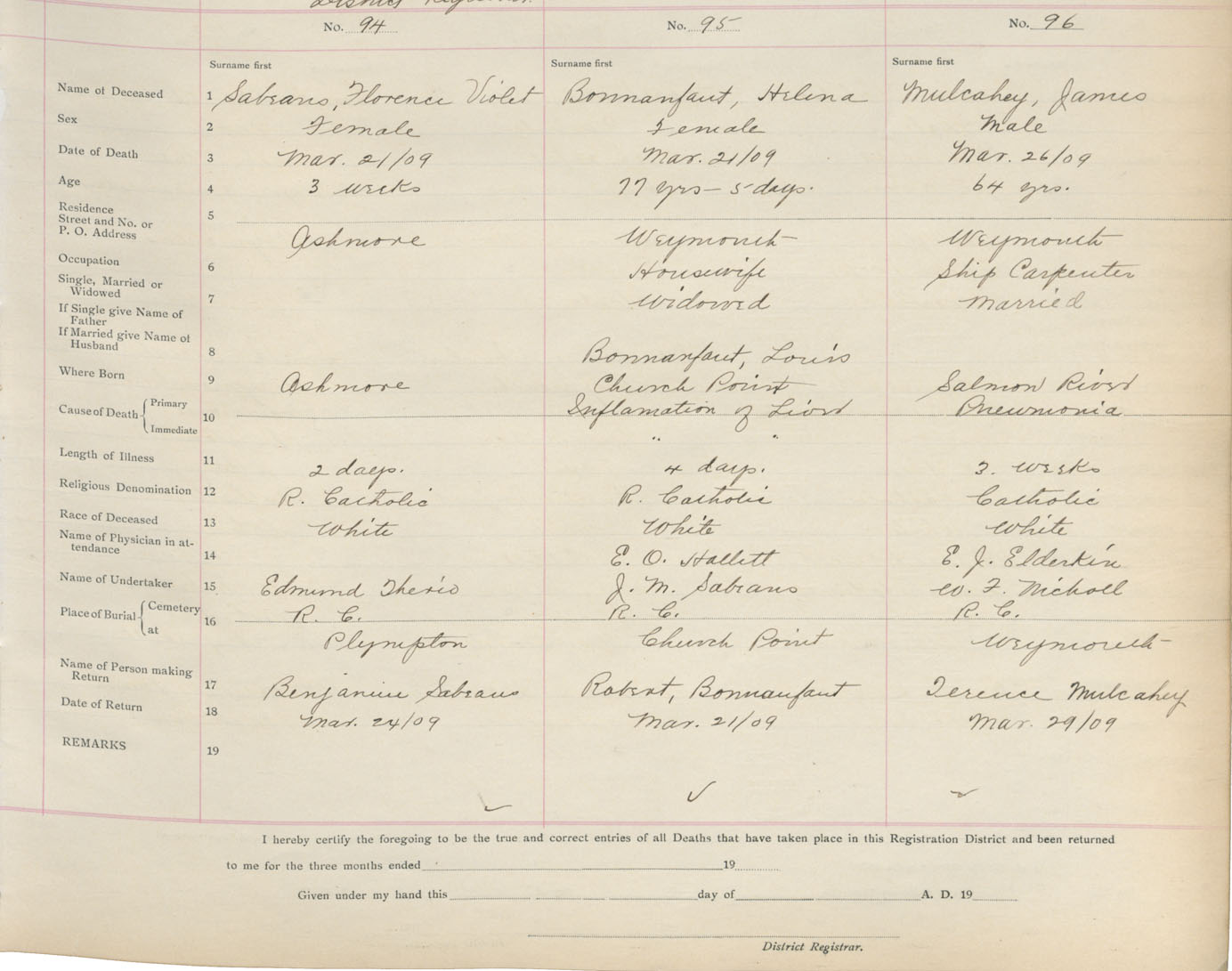 Death Registration: Year: 1908 book: 6 page: 16 number: 94