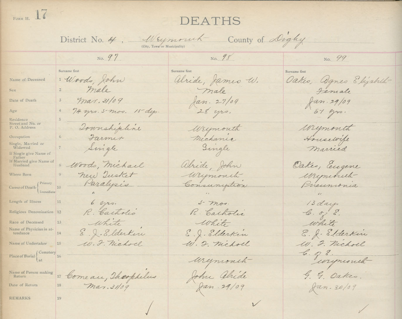 Death Registration: Year: 1909 book: 6 page: 17 number: 97