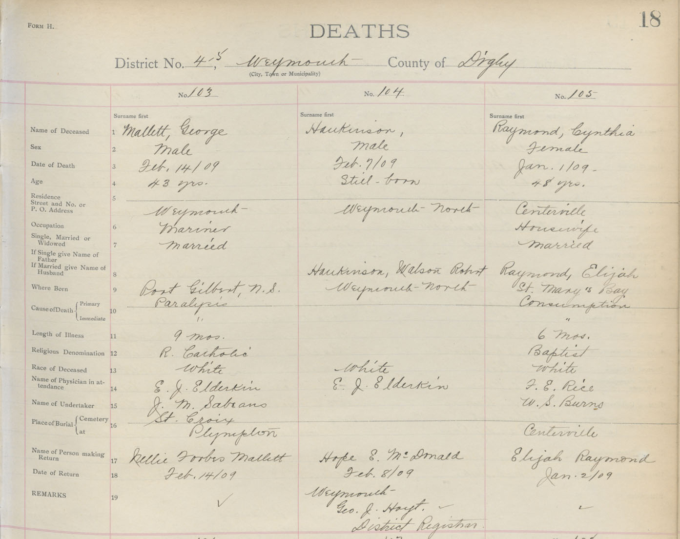 Death Registration: Year: 1909 book: 6 page: 18 number: 103
