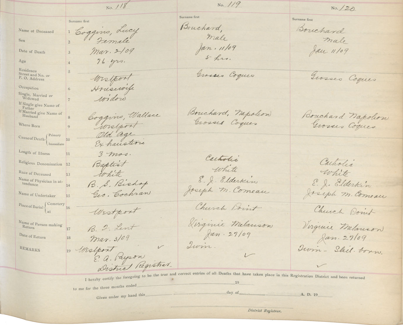 Death Registration: Year: 1909 book: 6 page: 20 number: 118