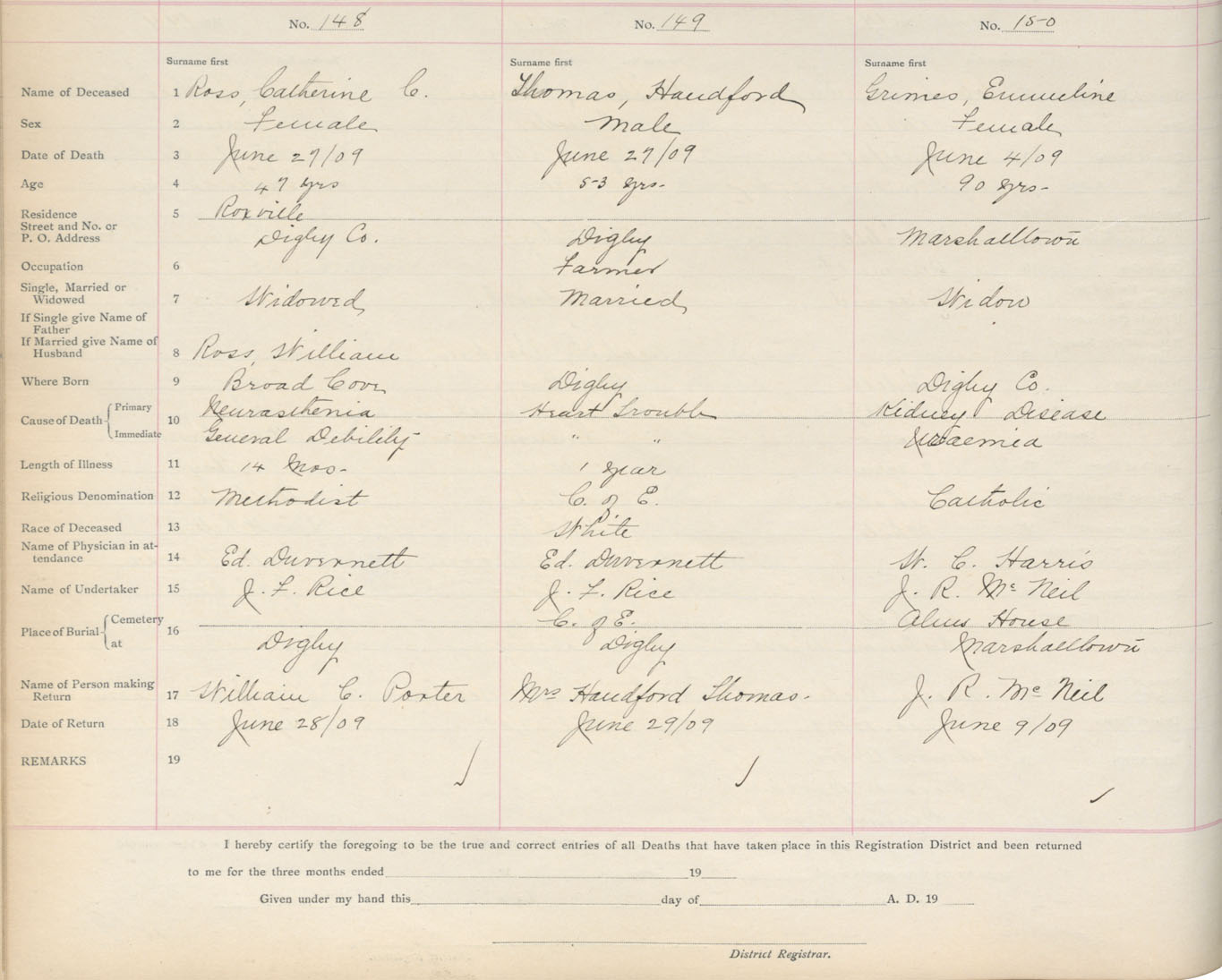 Death Registration: Year: 1909 book: 6 page: 25 number: 150