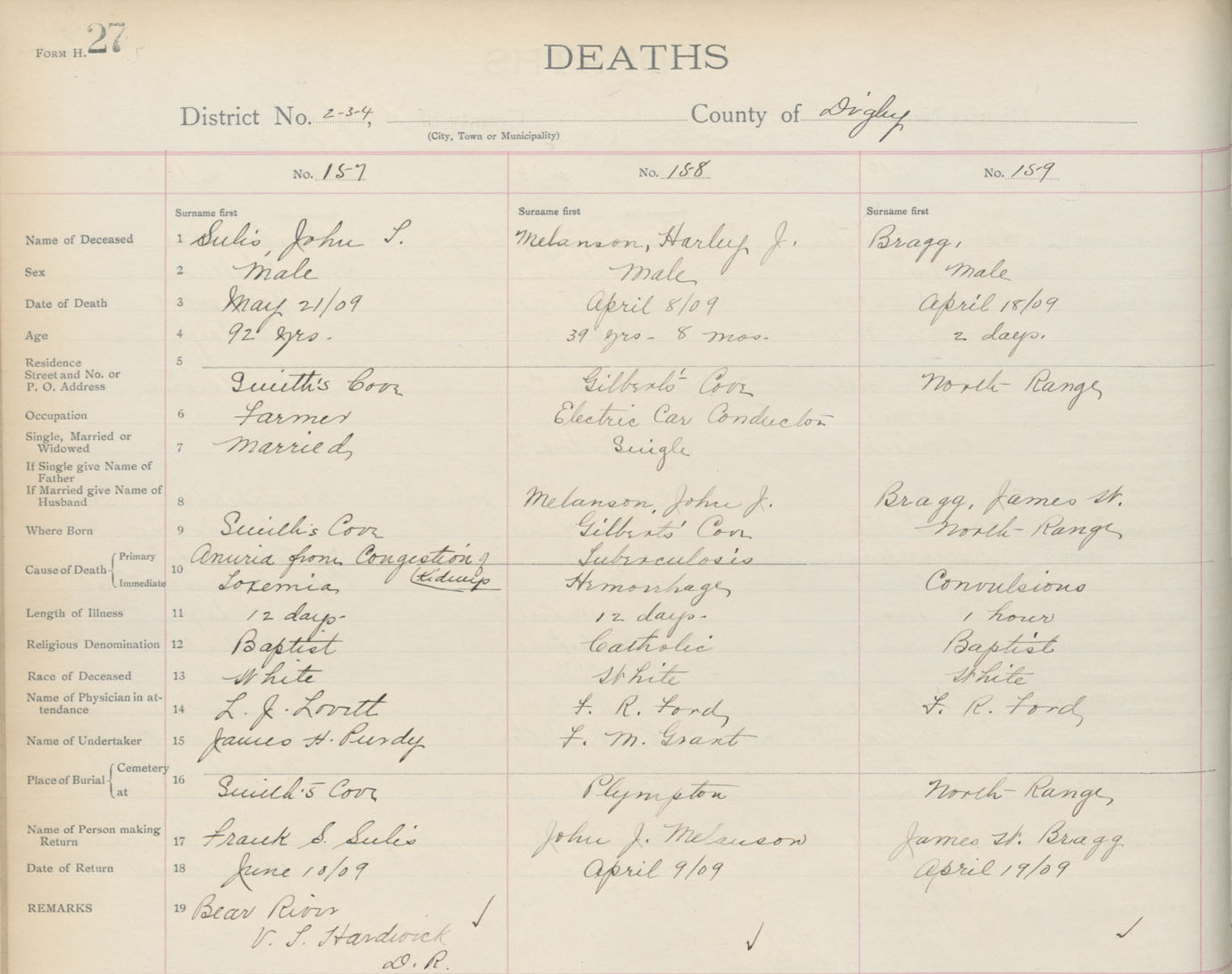 Death Registration: Year: 1909 book: 6 page: 27 number: 159