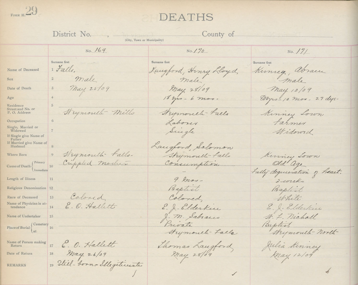 Death Registration: Year: 1909 book: 6 page: 29 number: 171