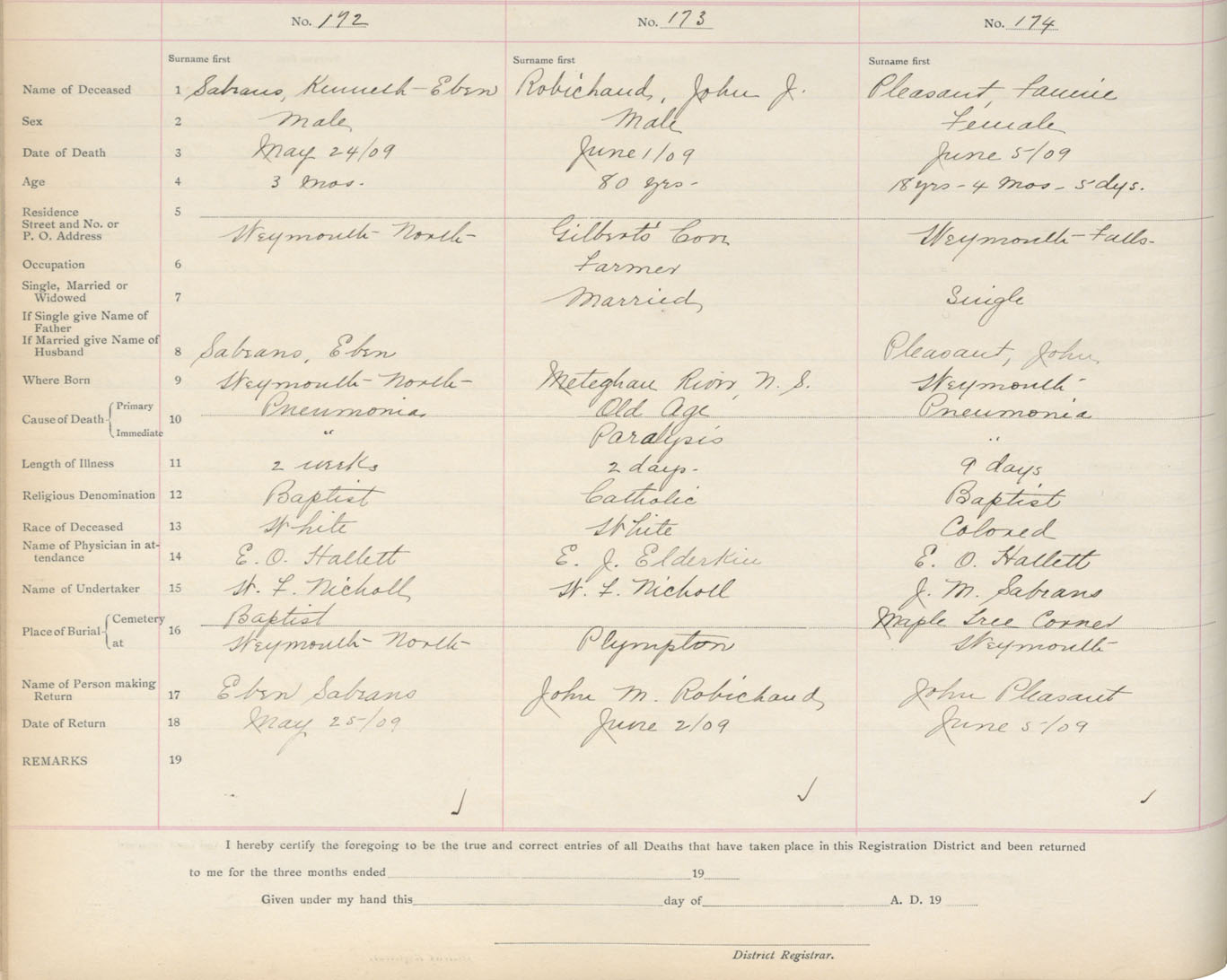Death Registration: Year: 1909 book: 6 page: 29 number: 174