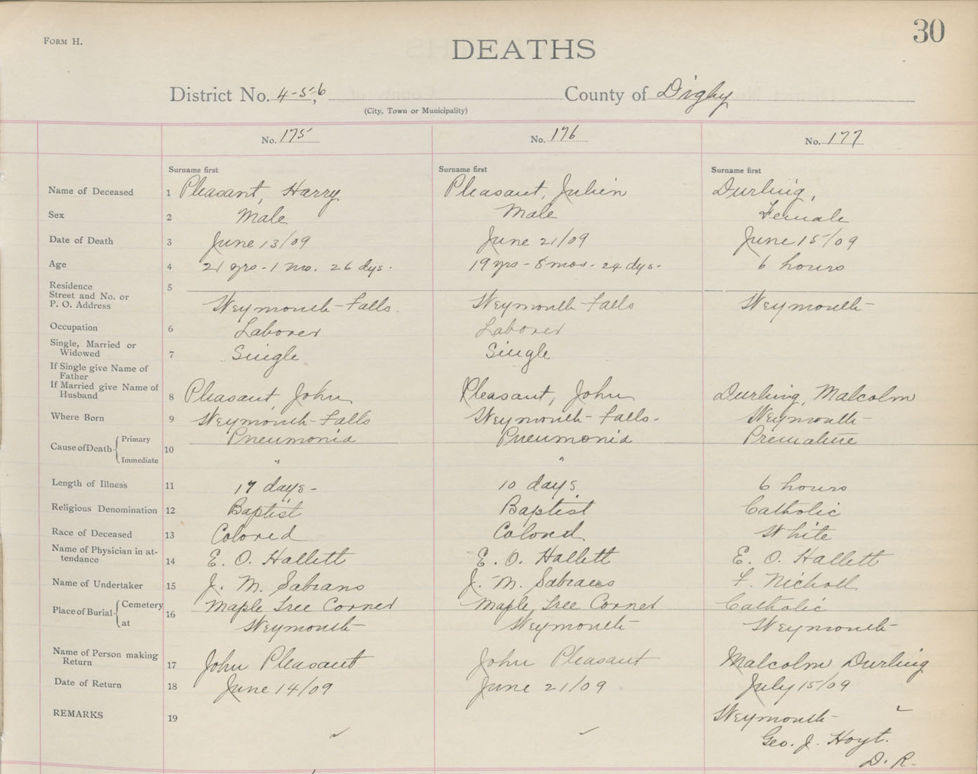 Death Registration: Year: 1909 book: 6 page: 30 number: 177
