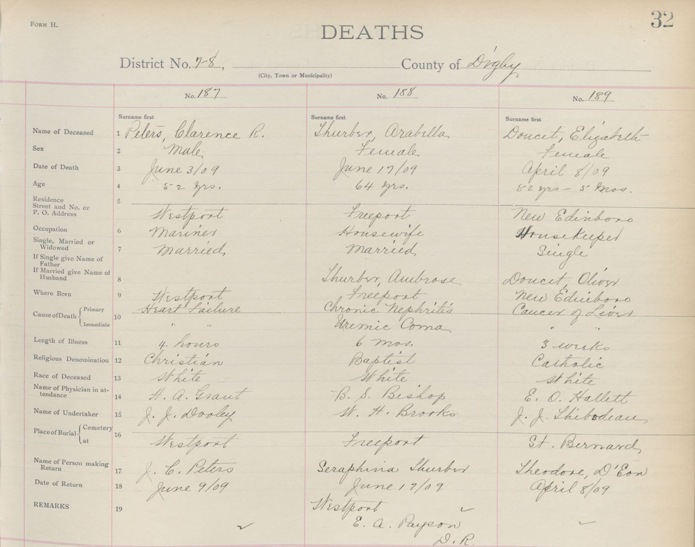 Death Registration: Year: 1909 book: 6 page: 32 number: 189