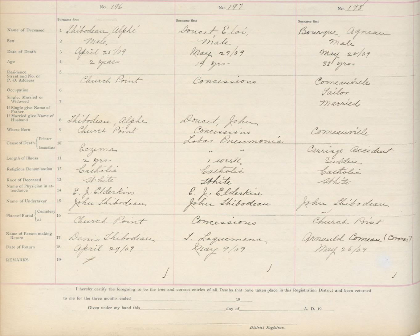 Death Registration: Year: 1909 book: 6 page: 33 number: 198