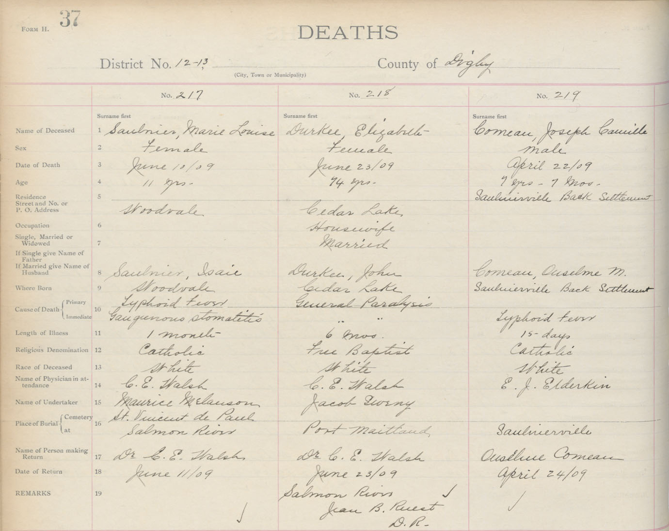 Death Registration: Year: 1909 book: 6 page: 37 number: 219