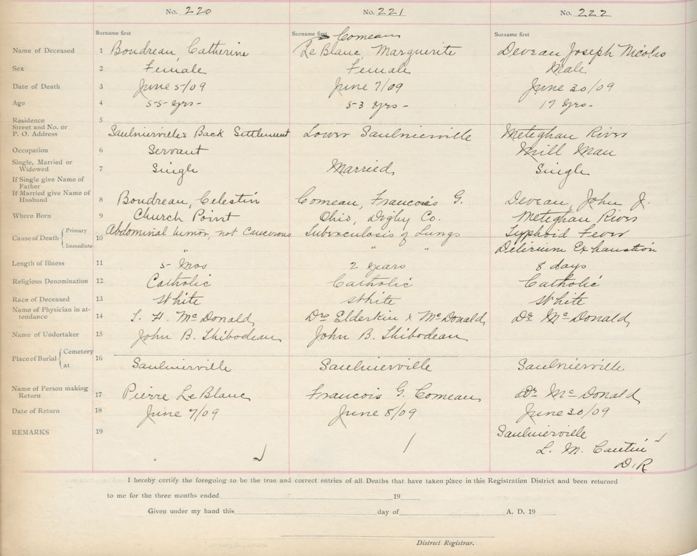 Death Registration: Year: 1909 book: 6 page: 37 number: 222